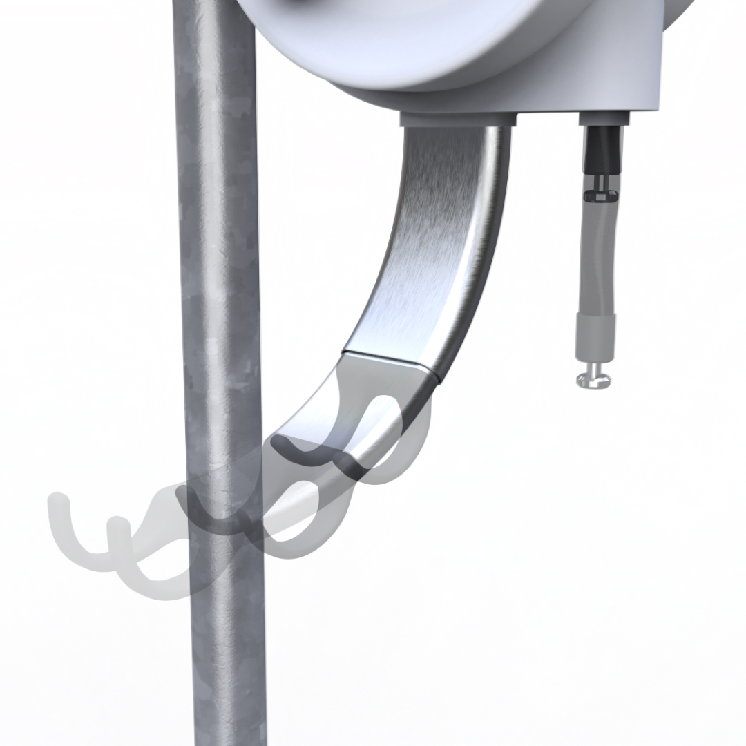 At its core, the system combines a hardened iron chain enclosed in a multi-layered nylon sleeve, providing both flexibility and high security. The chain can be extended up to three meters, allowing users to secure all relevant parts of their bicycle with ease. A spring-loaded arm at the bottom ensures a defined distance between bike and infrastructure, improving both handling and stability.