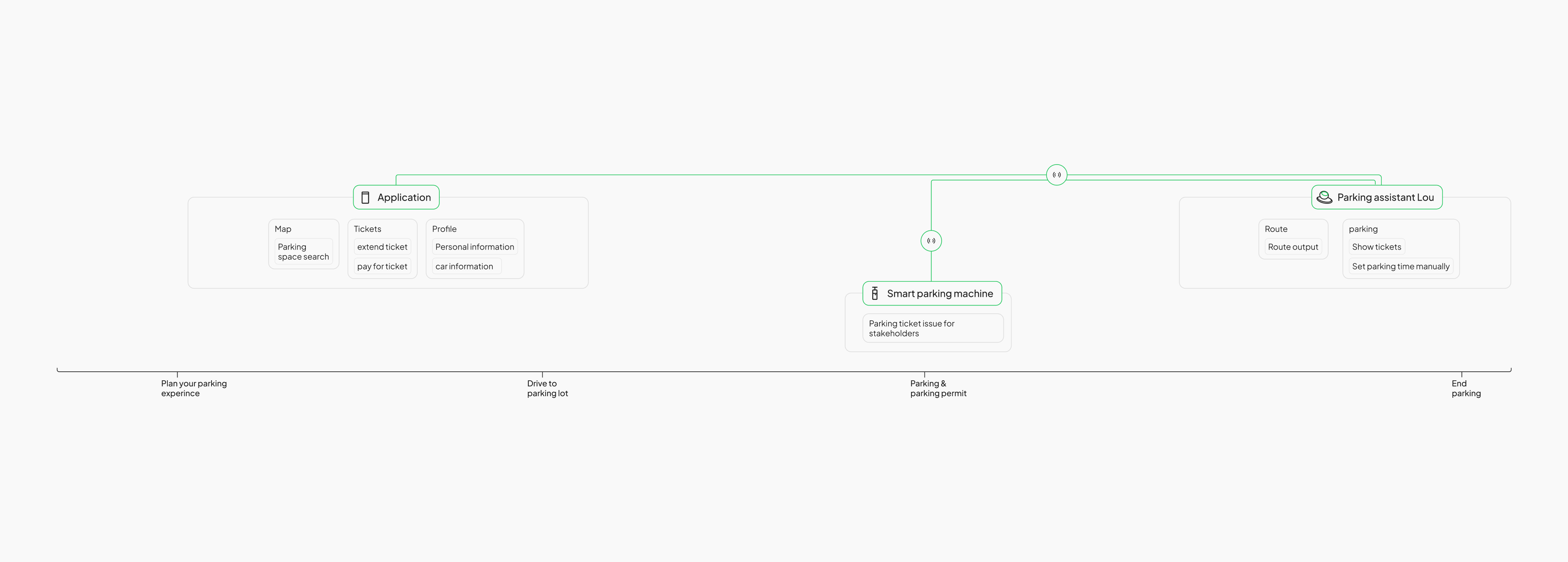 Through research and field observation, it became clear that current systems focus mainly on individual transactions – finding a spot, buying a ticket – while neglecting the overall user journey and interconnected stakeholders such as residents, visitors, and city authorities.